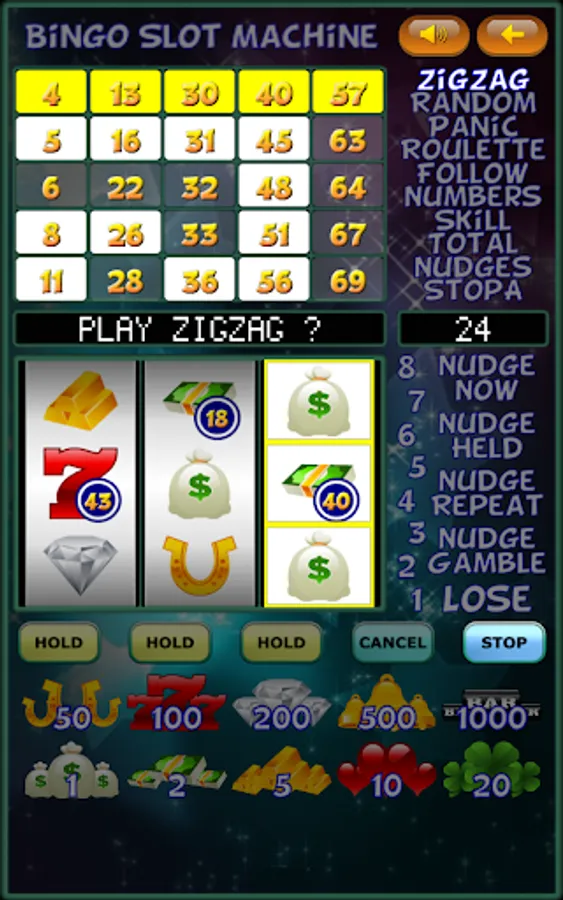 1/. ZigZag: Stop on a column, then a row, to win that amount.
