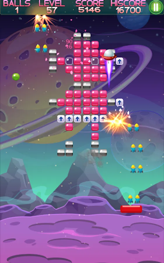 Help the alien get home by breaking all the bricks in his way.
