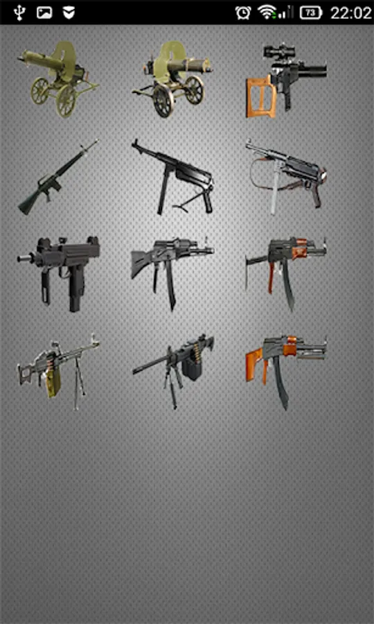 This app plays the sounds of weapon shots. A large collection of sounds of different types of weapons is available.