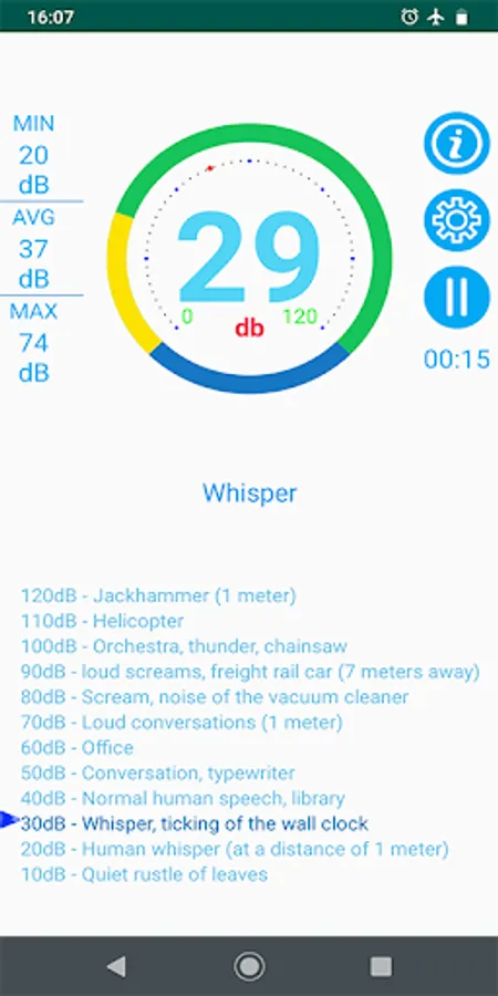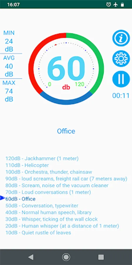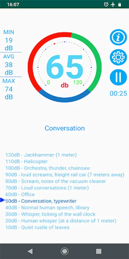 This sound level meter, also called a decibelometer, measures decibels in real time in your current environment, including showing the minimum,