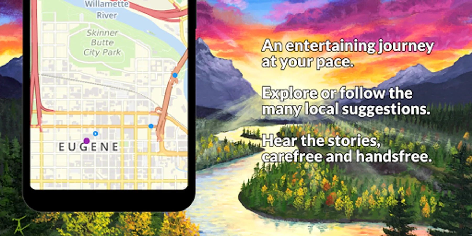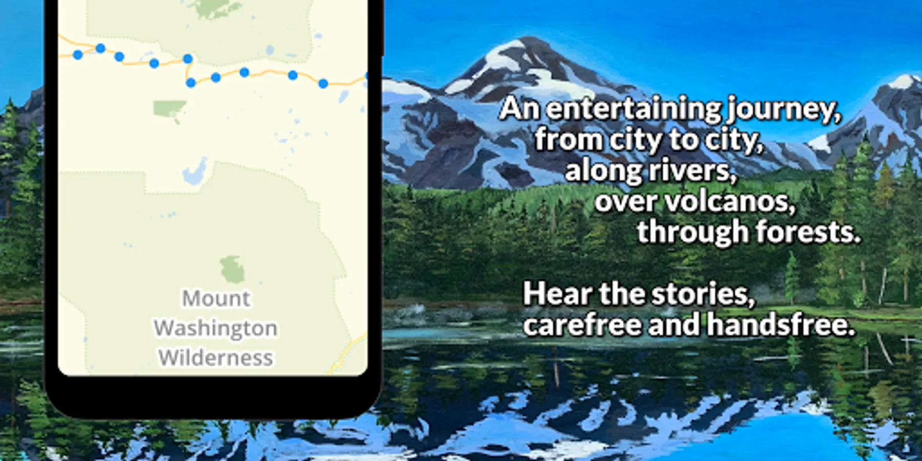 The Together Anywhere Audio Guides is a location aware storytelling experience that takes you on an entertaining journey through Oregon, in a way you have never traveled it before. These driving tours take you over the Central Cascades mountain range, starting in Eugene, Bend or Salem.