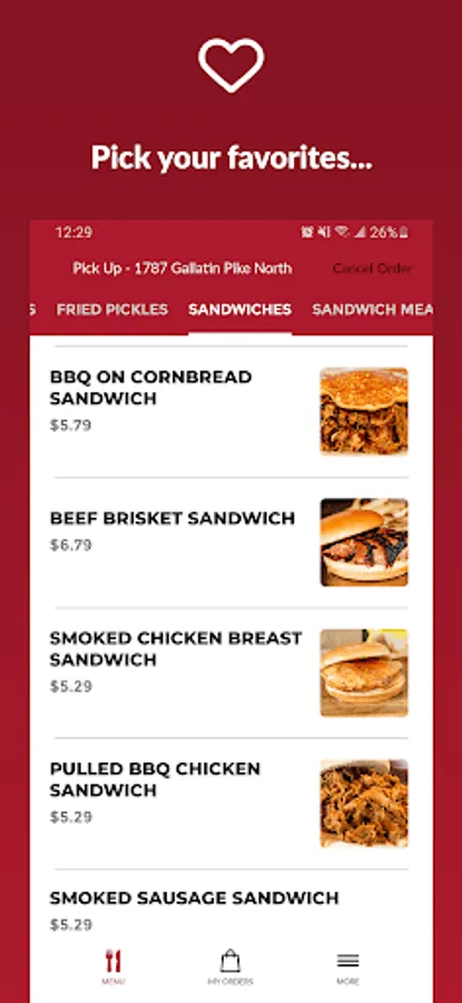 Ordering from Bar-B-Cutie SmokeHouse has never been easier! Use GPS to find a location near you, review the menu, place your order, and it’s ready when you want it. And since you can pay in the app, there's nothing to do but skip the line, grab your food and go.