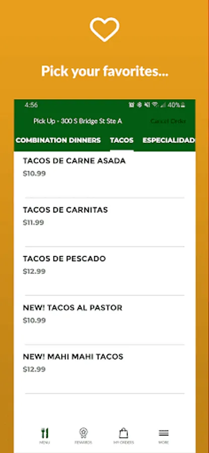 Ordering from Cancun Mexican Grill has never been easier! Use GPS to find a location near you, review the menu, place your order, and it’s ready when you want it. And since you can pay in the app, there's nothing to do but skip the line, grab your food and go.