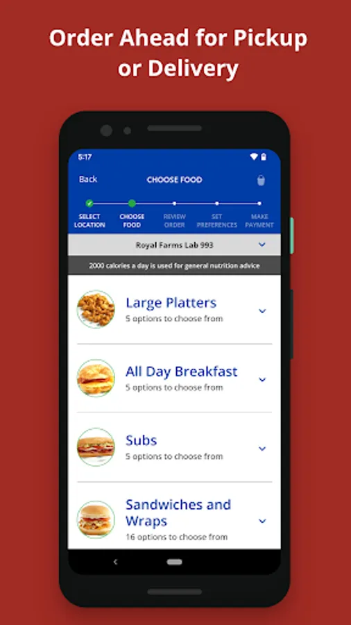 • Order ahead for pickup and delivery, and earn 2 Royalty Points per dollar spent