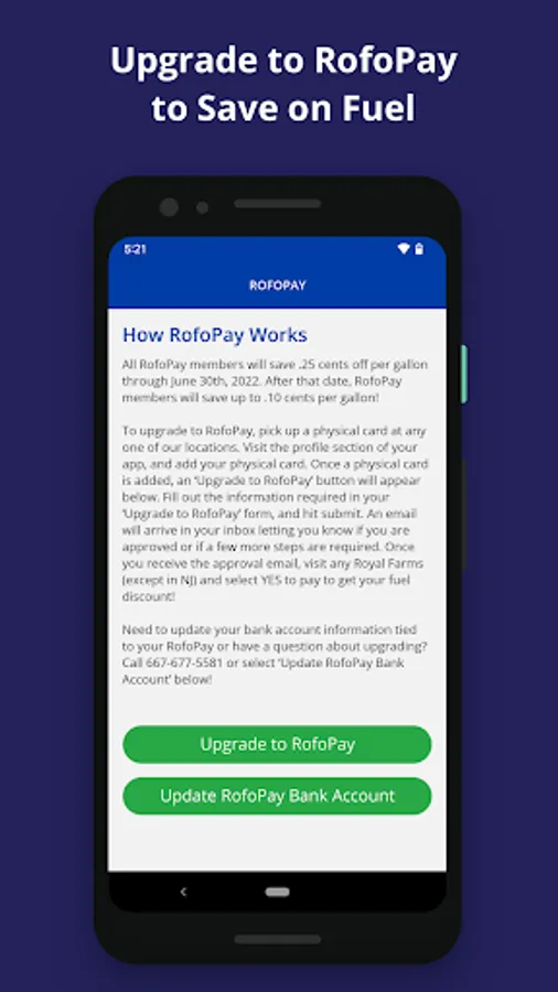• Upgrade to ROFOPay and save up to .10 cents off per gallon