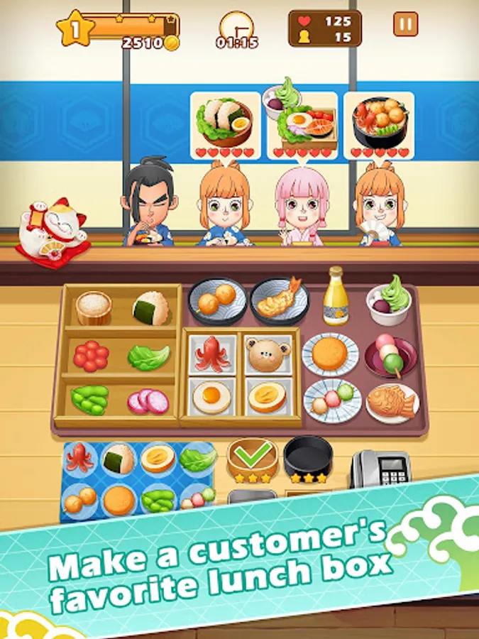 In the “Lunch Box Master”, you need to run your own lunch shop, quickly create a customer point of the menu, learn and launch a variety of new products to meet the customer taste buds, the use of a variety of lunch boxes kitchen is also rich and varied. In the production should also pay attention to customers waiting for patience, and continue to add raw materials. With the increase in customers, you may need to Lucky cat, advanced purchase phone, high-level lunch boxes and other props to upgrade to meet business needs.