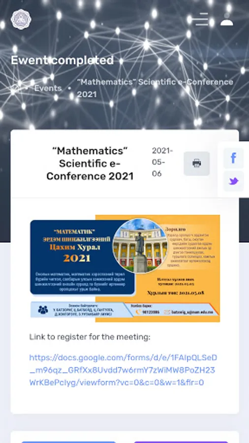 Mongolian Mathematical Society (MMS) was founded in 1995 to advance, disseminate and promote mathematical knowledge to society, to enhance the status of the profession of mathematics.