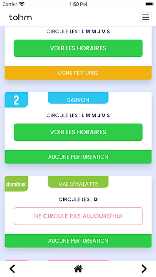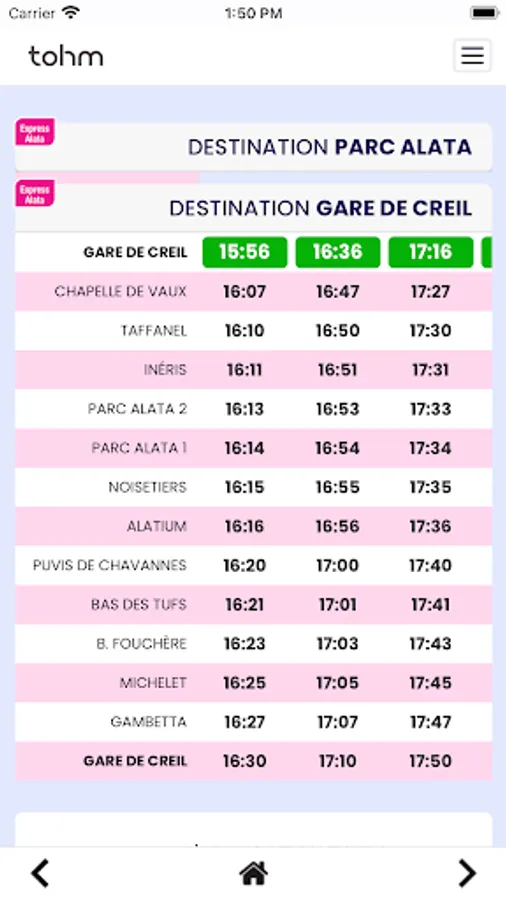The TOHM application: Timetables of the CCPOH bus network in the Oise department.