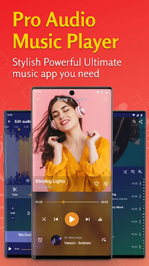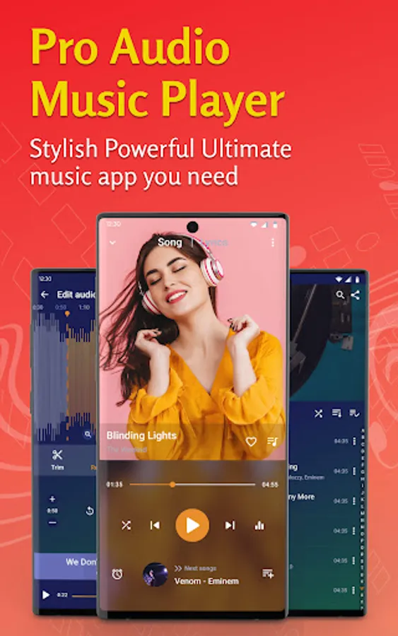 With Music player - Mp3 player, you can easily manage your songs like search, sort playlists and tons of cool customizations of a professional music player like shuffle, repeat, add picture for song, cut music, make ringtones, sleep timer mode.