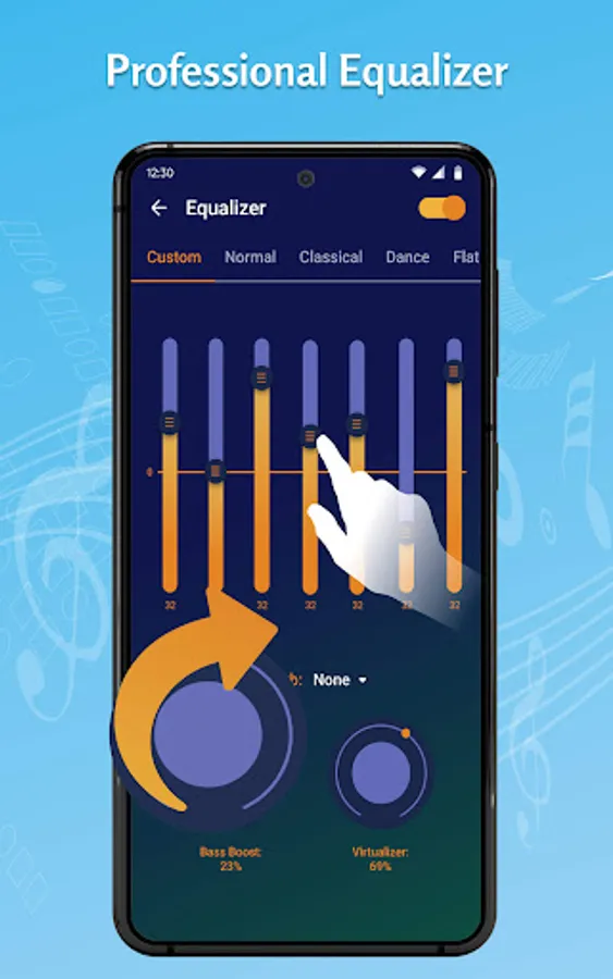 - Preset your music style (Normal, Classic, Dance, Flat, Folk, Heavy Metal, Hip hop, Jazz, Pop, Rock...)