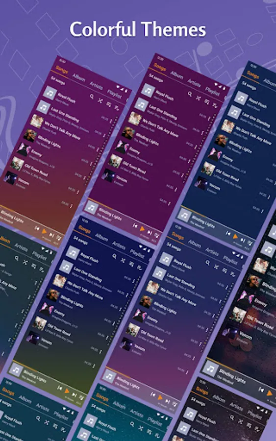 - Integrate a variety of music playing themes by color, optional album wallpapers, gradients