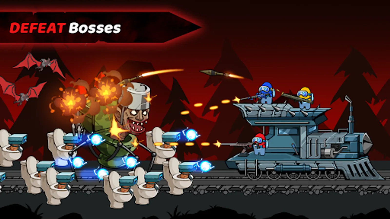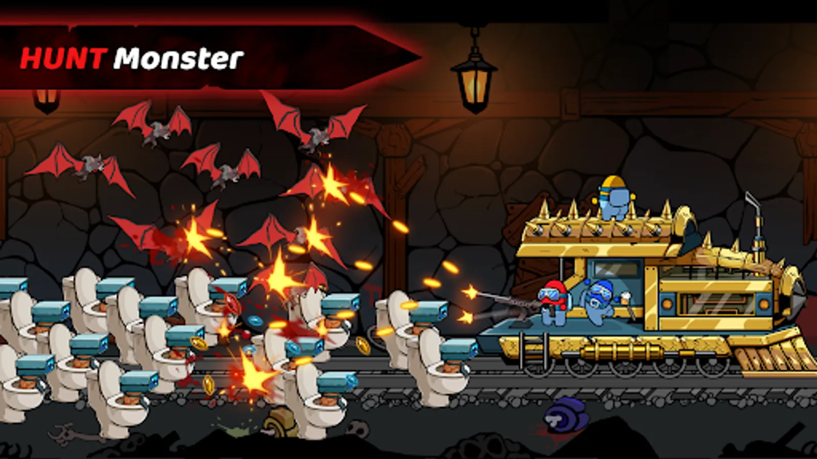 🕹️ Hunt and kill hordes of Zombies, Monsters, and Impostors! Collect more and more coins to upgrade your weapons to make them stronger.