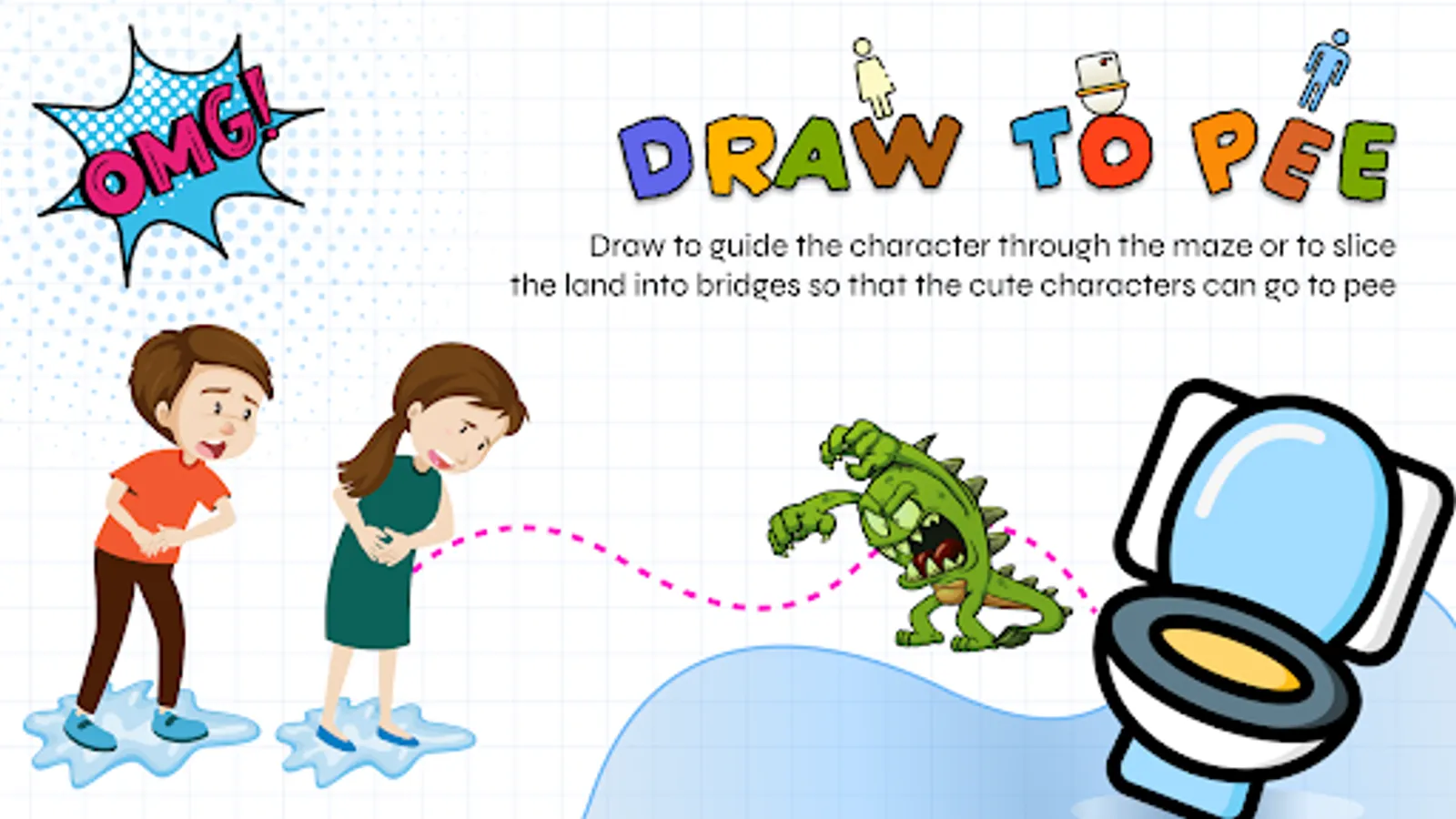 Show your mobile drawing skills in Toilet Rush: Draw Puzzle Race and reach the boy and girl to the toilet with a smart drawing.