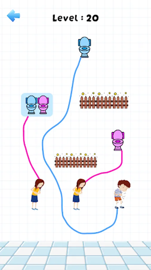 In the Toilet rush pee master game, you get a pair of boys and girls to reach the end of the toilet with draw a puzzle race line in the best way. There can be many possibilities for connecting boys and girls to toilets.