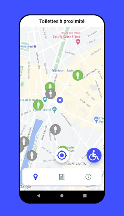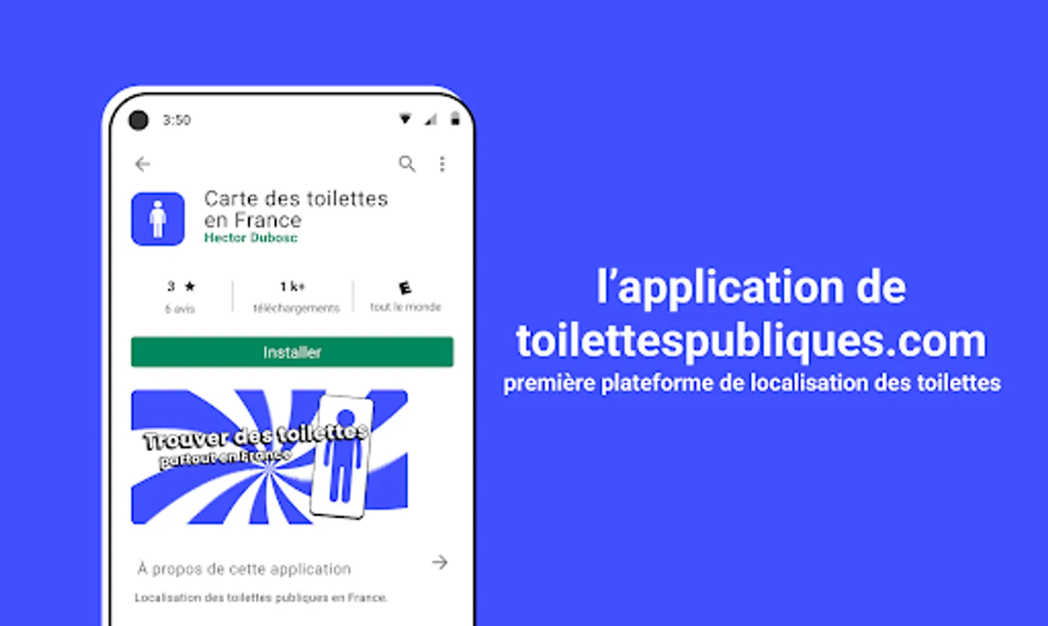 Application created by toiletspubliques.com, the first platform for locating toilets in France, in mainland France and overseas.