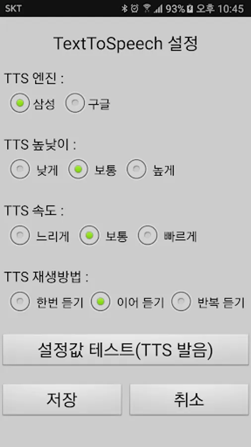 * TTS is set differently for each mobile phone manufacturer. (Example: Samsung, LG, Google, etc...)