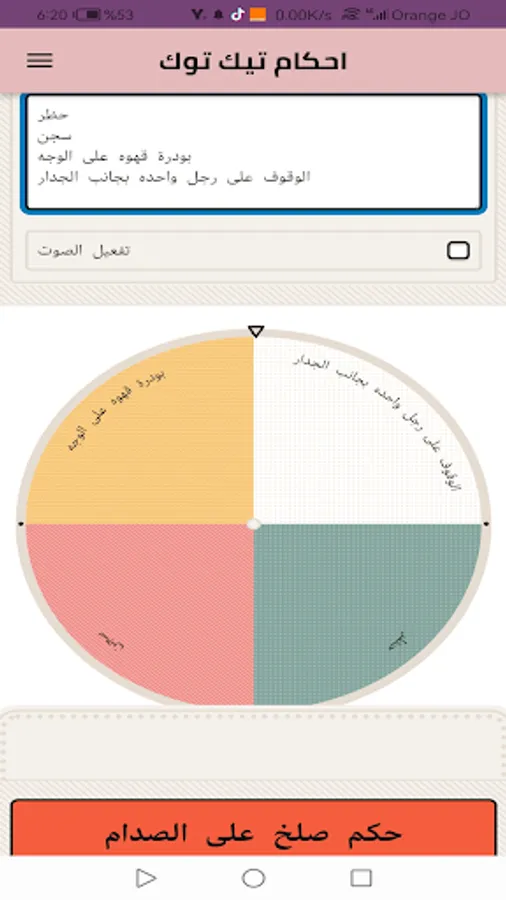 The application of Teek Took provisions is an entertainment application that aims for entertainment and includes a group of sections that are constantly updated. It includes the ability to choose a group of your Tik Tok provisions and make a random selection from them