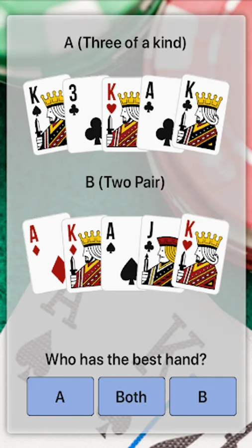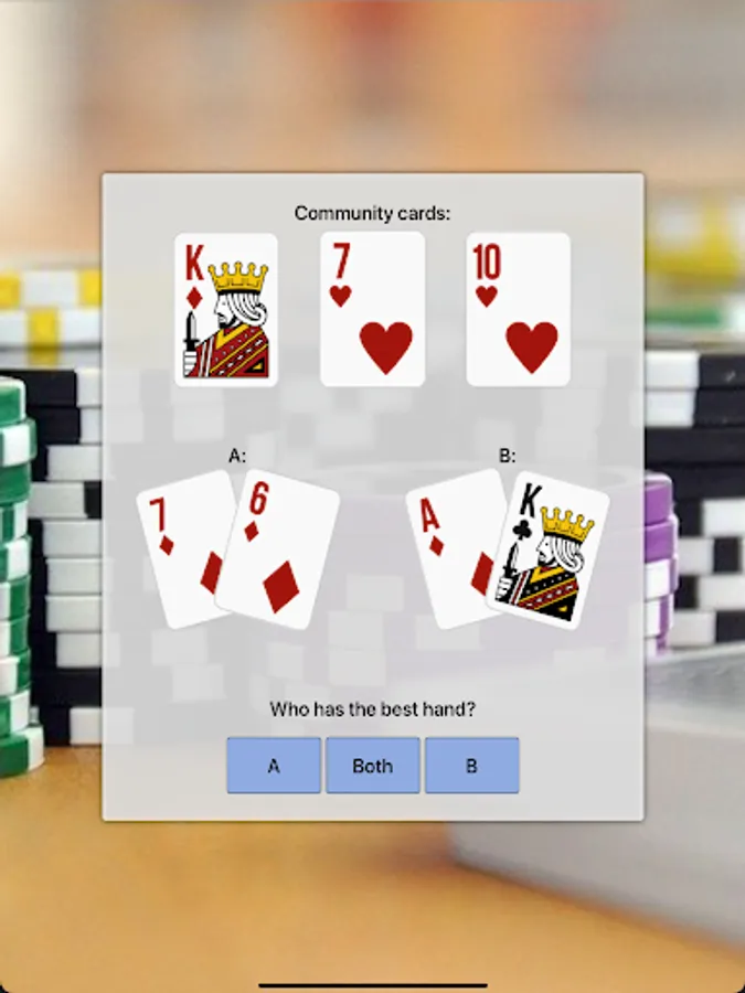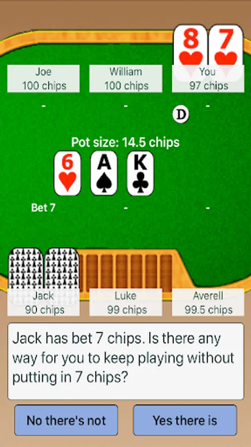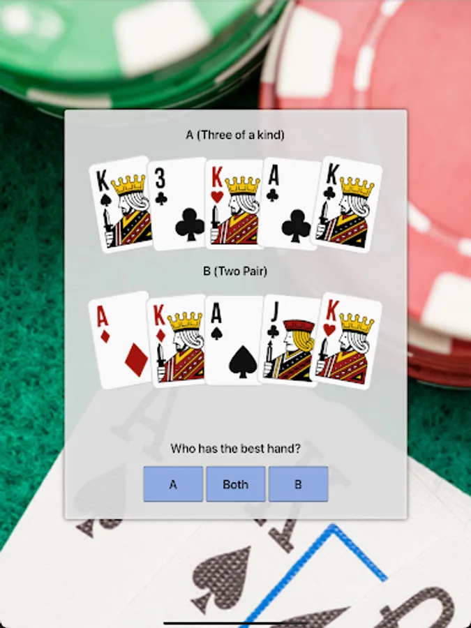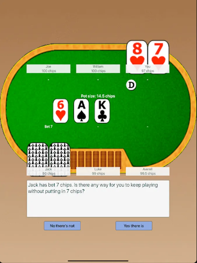 By answering simple quizzes, you'll learn whose turn it is, when additional cards are dealt, and which player has the winning hand.