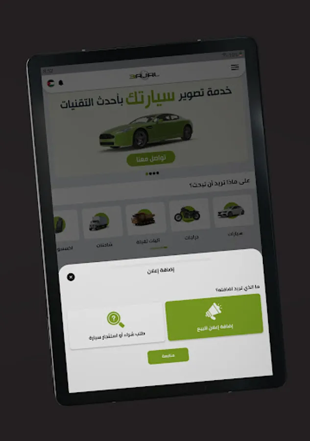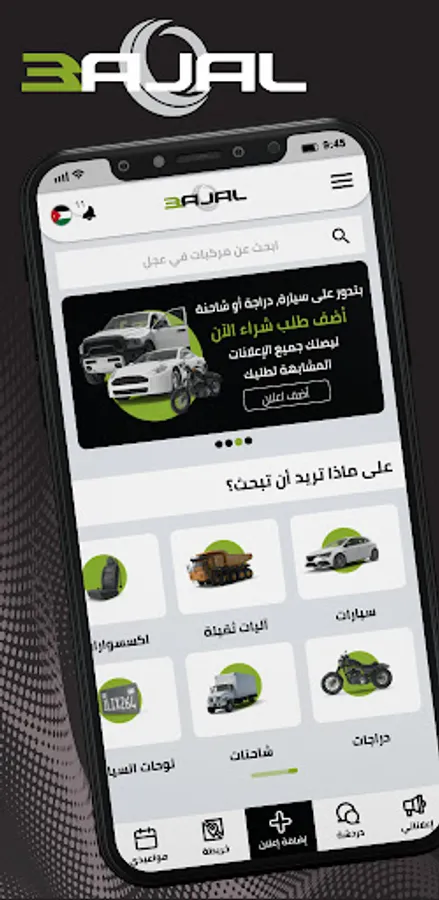 The Ajl application is considered one of the pioneering applications specialized in the field of vehicles in the Hashemite Kingdom of Jordan and other Arab countries, as the website and smart phone applications were launched in November of 2022 to facilitate the operations of adding advertisements for sale, purchase, or rent to vehicle owners and car rental and sale companies. And vehicles, as well as facilitating the process of searching and filtering for users and those looking for vehicles with the aim of buying or renting them, whether they are cars, trucks, bicycles, heavy machinery, vehicle accessories, vehicle spare parts and many other classifications with ease, ease and the most accurate results using artificial intelligence technology.