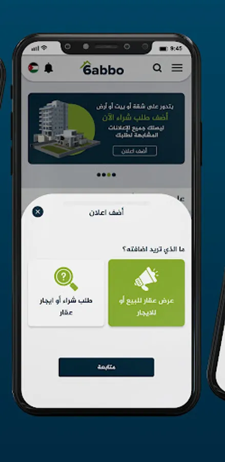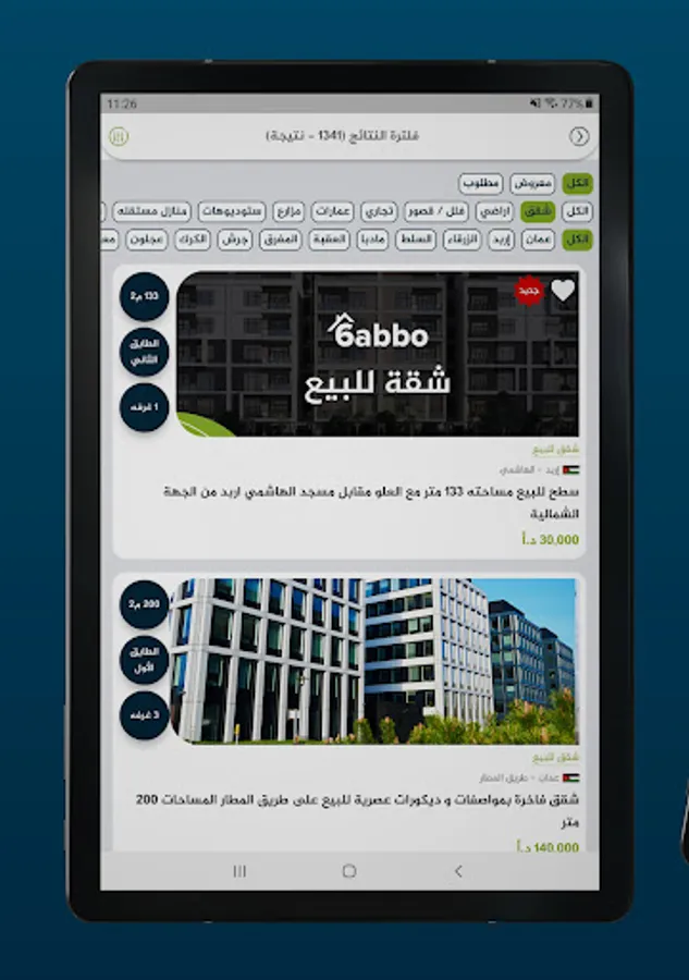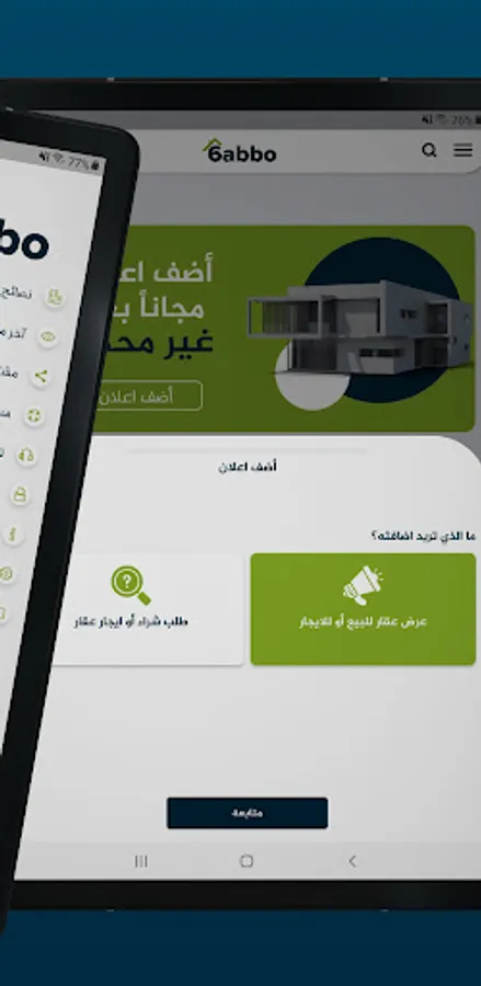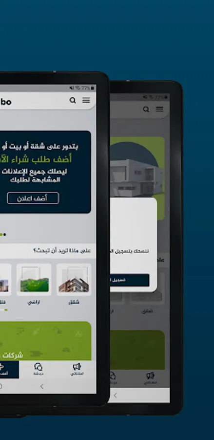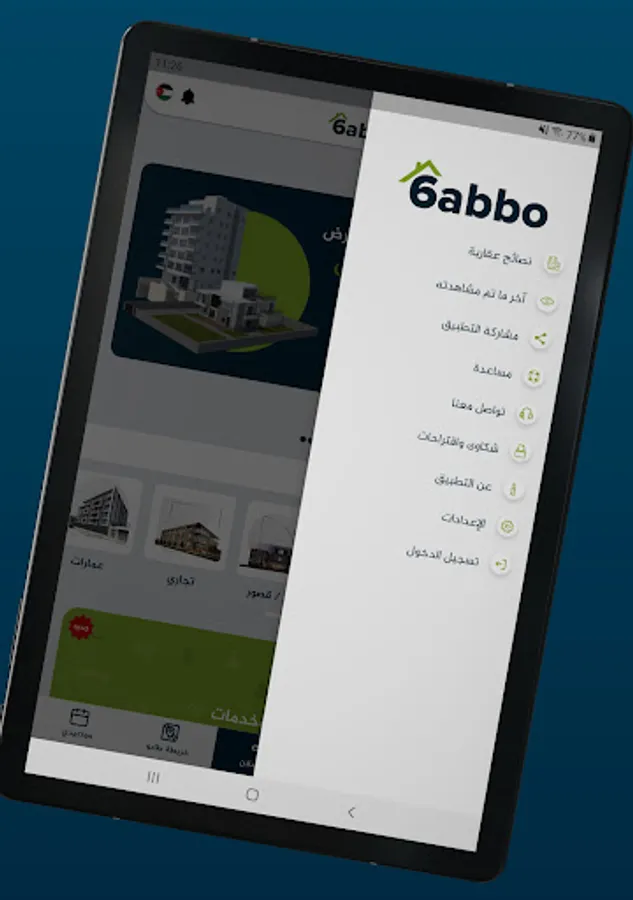 TABO real estate application is one of the pioneering applications specialized in the field of real estate in the Hashemite Kingdom of Jordan, the Gulf Cooperation Council countries and the Arab State of Egypt, where the website and smart phone applications were launched in November of 2021 to facilitate the processes of adding sale, purchase or rent advertisements to real estate owners or Representatives in real estate brokerage offices, as well as facilitating the search and filtering process for users and real estate seekers in order to buy or rent them, whether they are lands, apartments, hotel apartments, homes, villas, buildings and buildings, shops, offices and many other real estate classifications with ease, ease and accurate results using artificial intelligence technology .