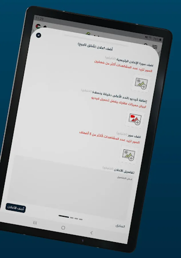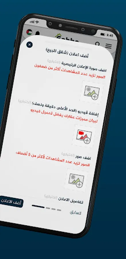 All you have to do as a seller/lessor is to upload clear and real photos of the property you want to rent or sell, put your full contact information and enter a clear and correct description of your property, and immediately your property will be displayed on our electronic platform and smart phone applications. For the buyer, all you have to do is enjoy searching for a suitable property for you and use the filtering system to make it easier for you to search for the right property in the right place.