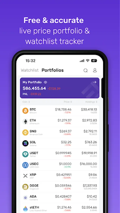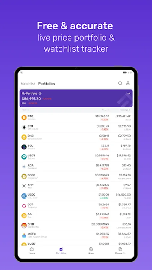 * Track 13,000+ token prices with charts and in-depth details