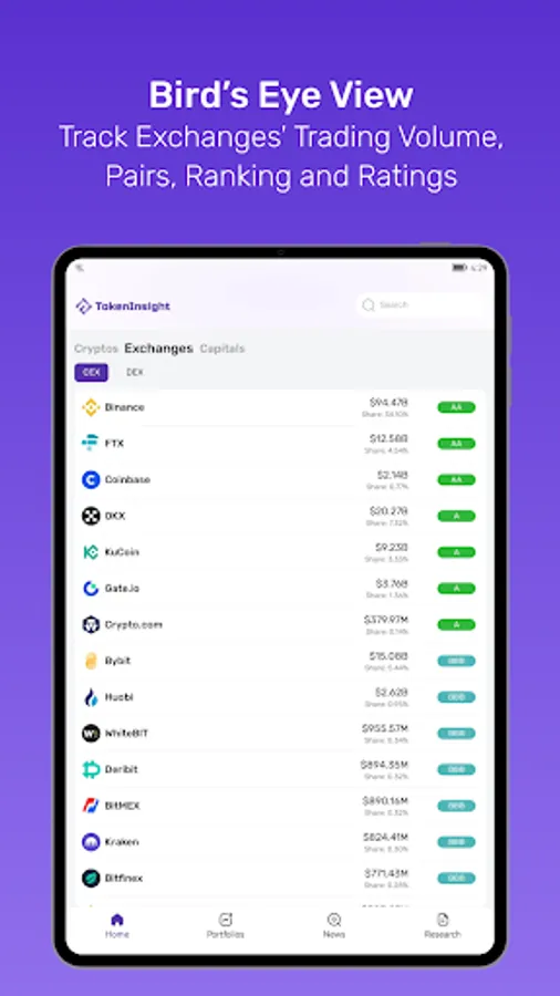 Bitcoin, Ethereum and Altcoins profiles, live prices with historical charts, portfolio management, crypto news/alerts, upcoming IEO, IDO & Airdrop calendar, NFT & DeFi research reports, token rating reports, industry reports.