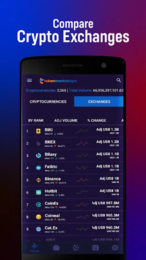 To help users in buying, selling, and trading cryptos, Tokenmarketcaps app ranks more than 100 exchanges based on its adjusted volume and price change. Check out comprehensive details about the historic volume, active markets, trading pairs, and fee structures of Coinbase, Bittrex, OKEx, Bithumb Global, Binance, and more.