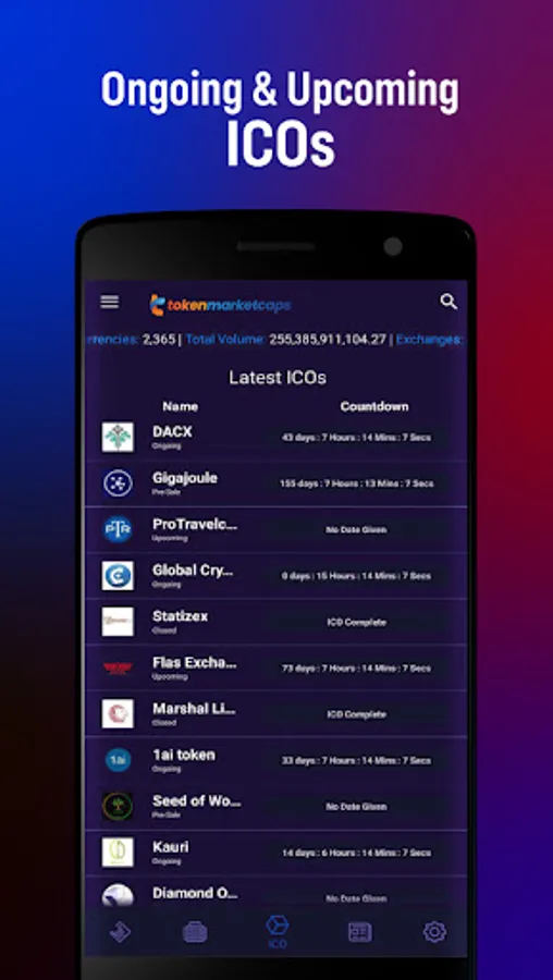 Tokenmarketcaps is an easy to use cryptocurrency market app that aims to provide the latest cryptocurrency rankings, exchange volume, crypto news and events, ICO updates, and many more.