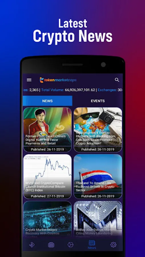 Tokenmarketcaps app gathers the breaking crypto news from various online media publications like Cointelegraph, Coindesk, Newsbtc, and other sources. Tokenmarketcaps app lists down conferences, celebrations, and activities you can participate in.