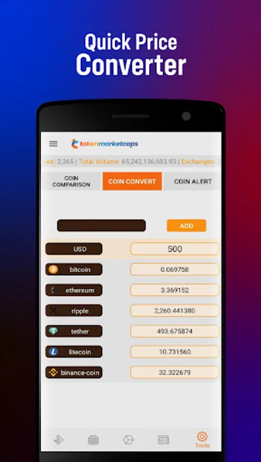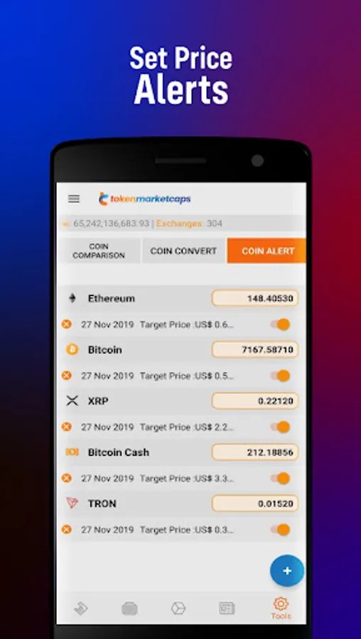 Enabling the coin alert feature, you can get notified of bullish trends or price drops in the crypto market. Tokenmarketcaps app allows users to set thresholds and alerts by percentage or price value.