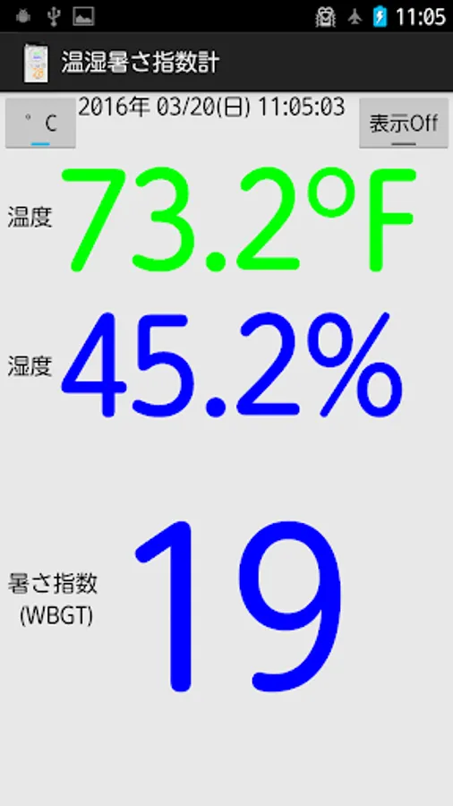 更にその両方の値から、暑さ指数(WBGT)の表記をする