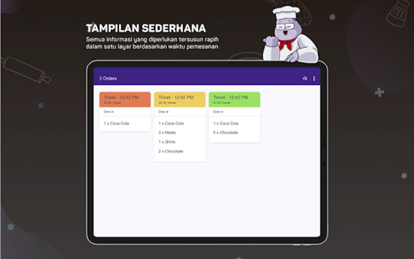 TokoPOS KDS app integrates automatically with TokoPOS and displays all necessary order information: items, modifiers and notes.