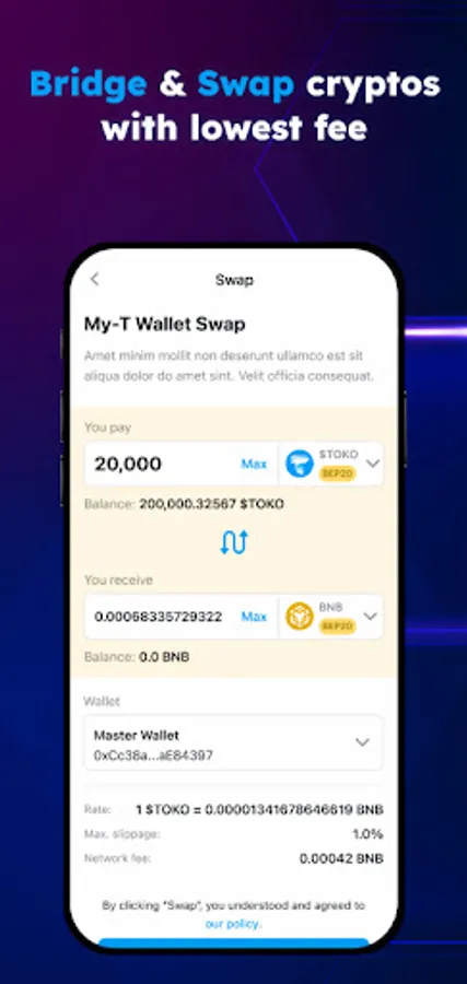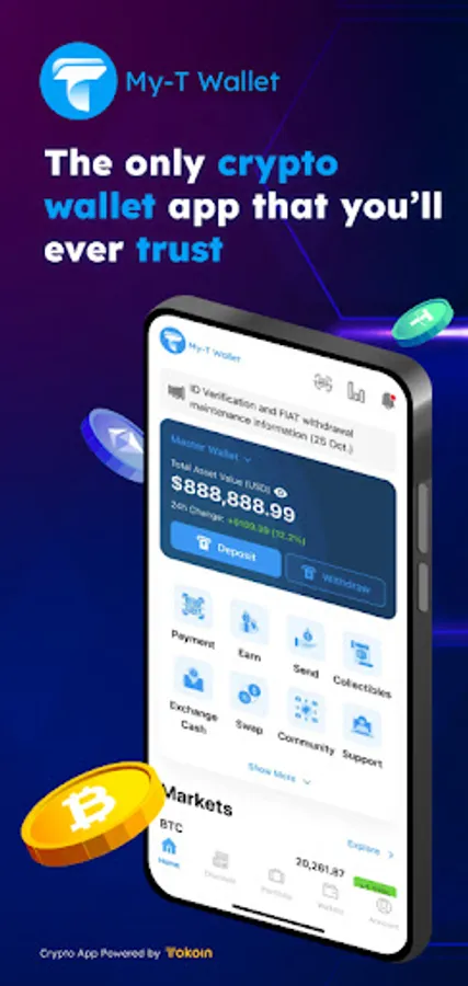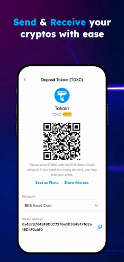 It is the first official digital wallet from Tokoin where you can store and transfer your TOKO token. Besides TOKO, you can also manage multiple cryptocurrencies including Bitcoin and Ethereum. Check your balance, transaction history, and securely send and receive cryptocurrencies in this all-in-one crypto app!