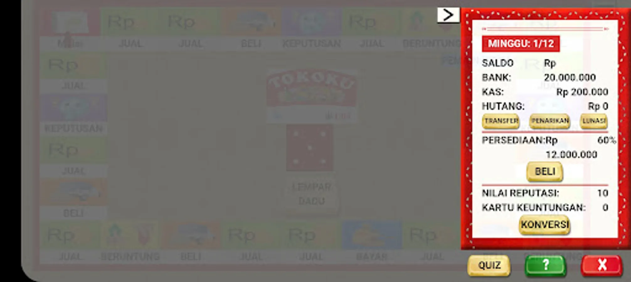 Tokoku means "My Shop" in Bahasa Indonesia. It is a monopoly-like game for finance literacy education. This is a mobile learning app launched as part of the Emmanuel Foundation Home Learning programme and extends out to the wider network of schools and connections with the Indonesia department of education