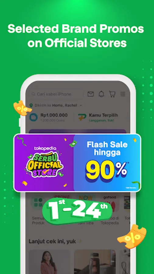 Curious about the promo? Here, let me spill it for you! There's a Flash Sale of up to 90% Official Store, Special Deals & Discount in WIB, Cashback, Free Delivery, etc! Nothing beats online shopping in Tokopedia, more efficient, cheaper, and easier! - There are also many payment methods available, isn't it exciting??