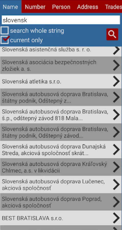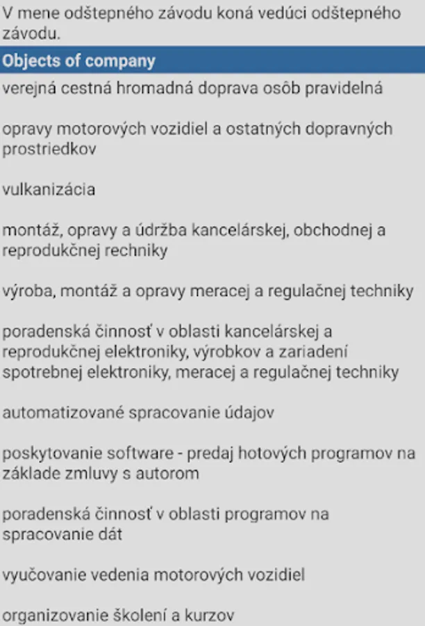 Application uses open data sources of information about businesses in Slovak Republic. It cannot be used as official source of information!
