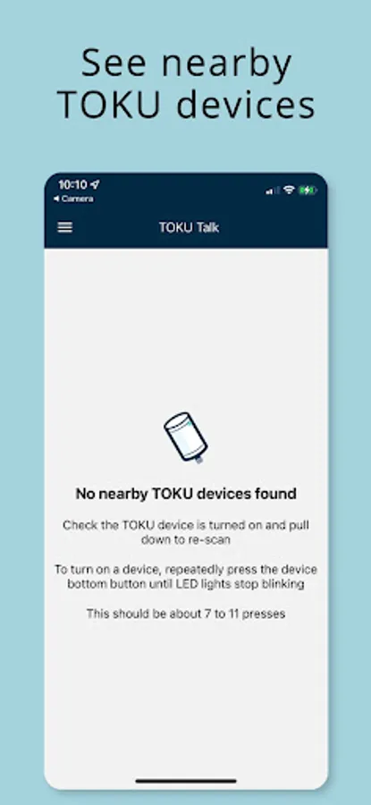 TOKU Talk can be used to talk to TOKU Systems devices, the T100Xs, to get immediate feedback about whether or not it is working as expected, using your smartphones Bluetooth.