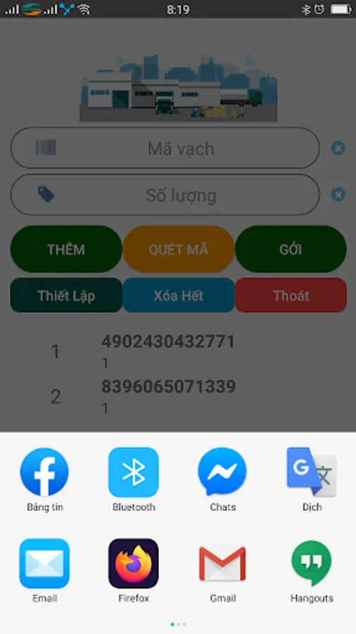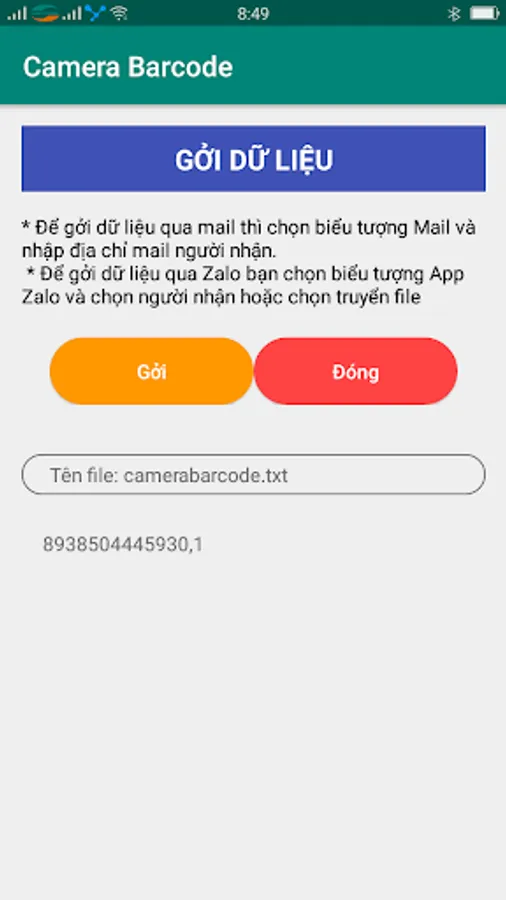 Instead of using a handheld barcode reader (barcode scanner to check stock) and then using a USB cable to connect the device to your computer to get data, you can use this app to read the barcode and save it as a file. text then use this file and transfer it to the computer to print the counter price list.
