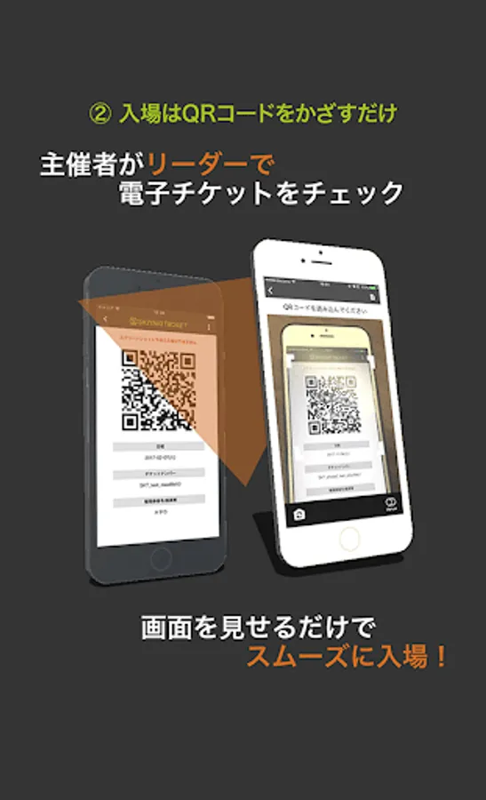The entrance staff will verify your QR code with the SKIYAKI Reader app. After completing verification, you can enter the venue.