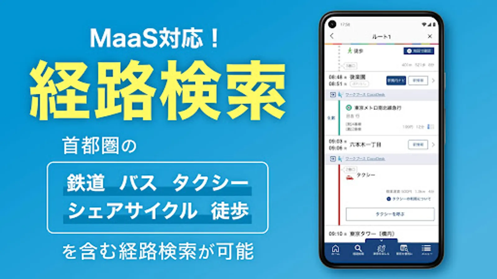 This is an app that realizes "my! Tokyo MaaS," a metropolitan MaaS (Mobility as a Service) initiative in Tokyo.