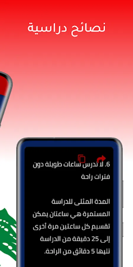 The application is equipped in cooperation with experienced teachers to prepare for official exams in Lebanon.