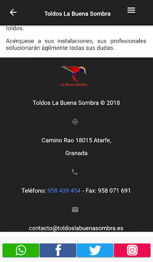 Toldos La Buena Sombra is a company that has highlighted both the speed and efficiency when installing awnings as resolve any issues that are their customers.