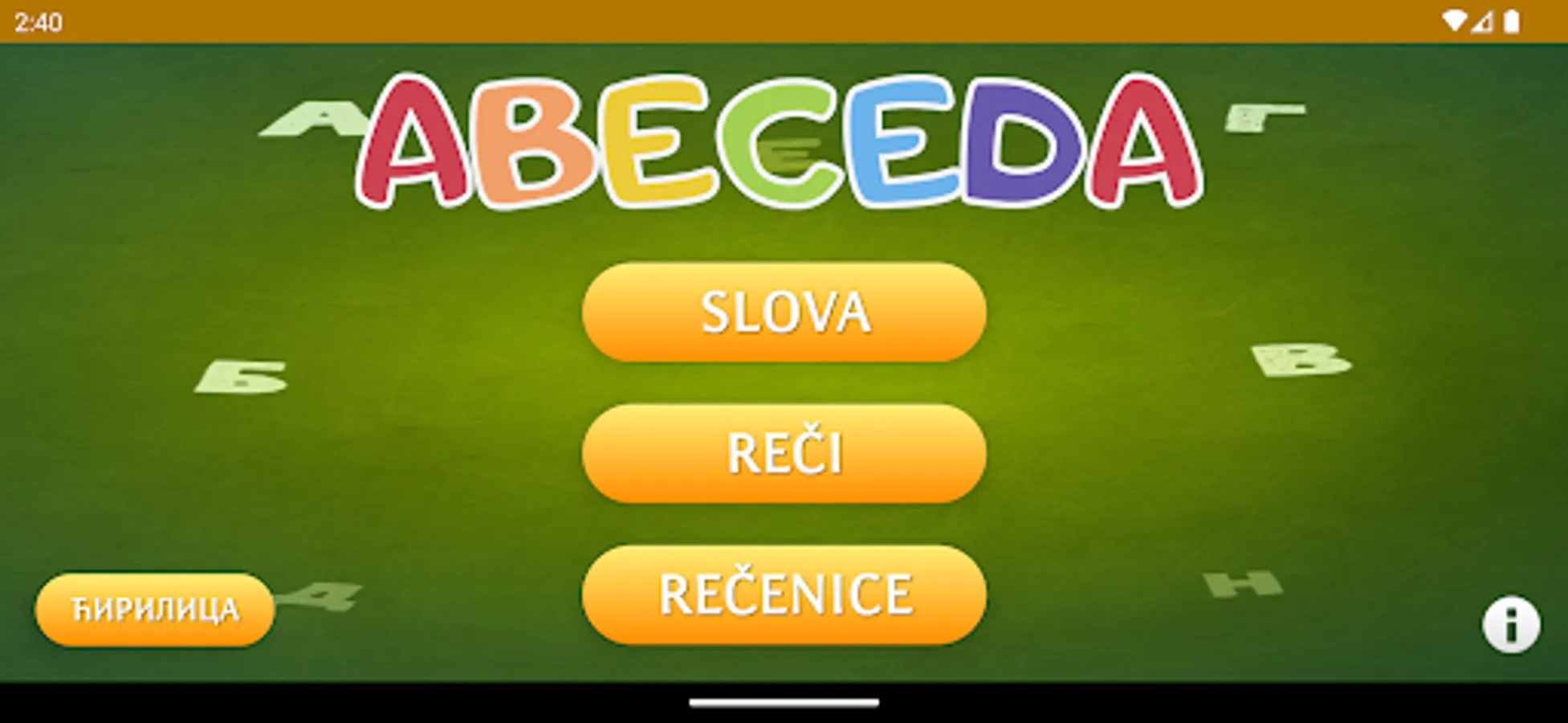 A free application intended for children to help them learn the letters of the alphabet and the alphabet, as well as to read words and sentences.
