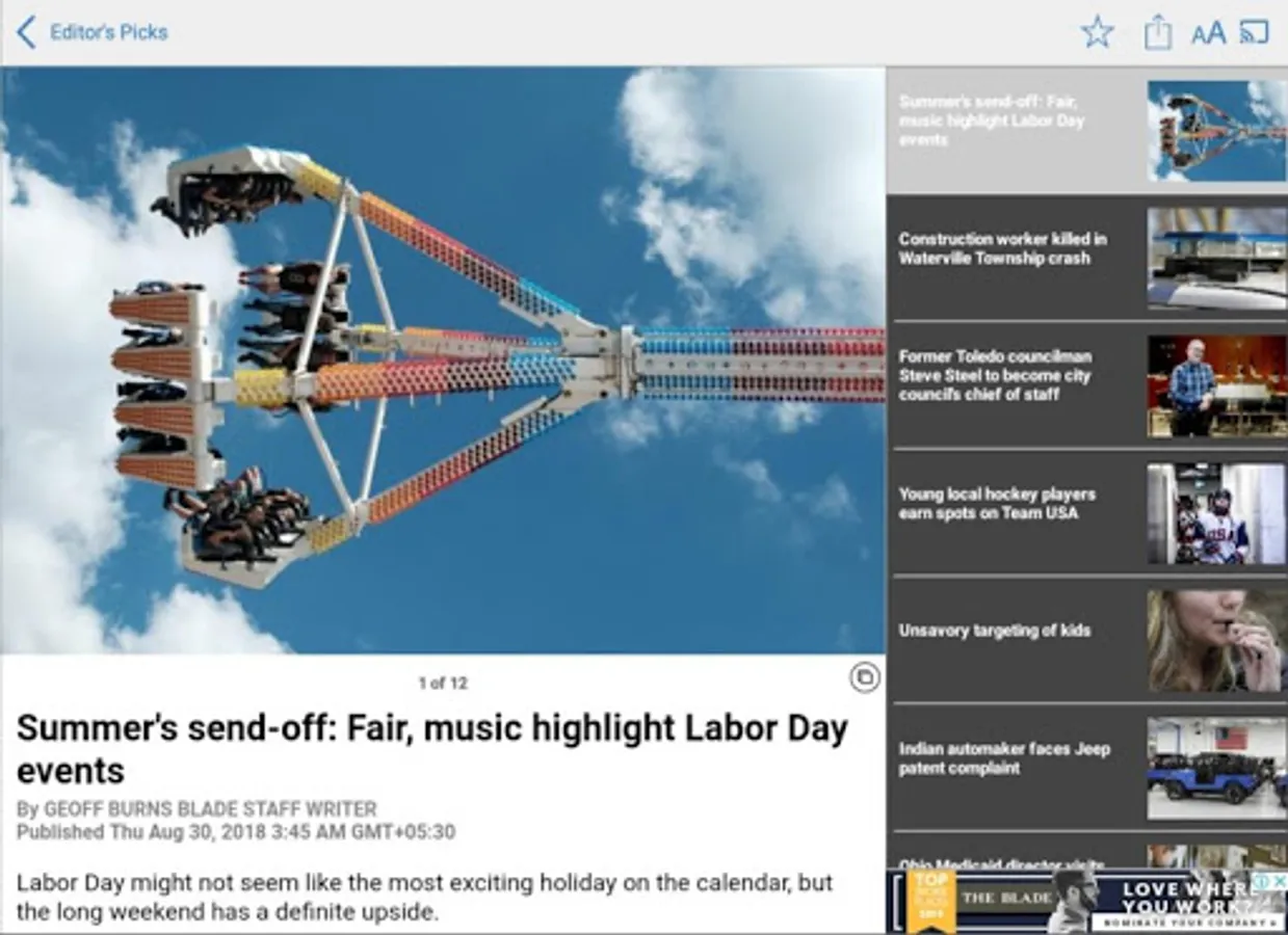 Today, The Blade covers 14 counties in Northwest Ohio and Southeast Michigan and The Blade and toledoblade.com makes information about the area accessible to the world.