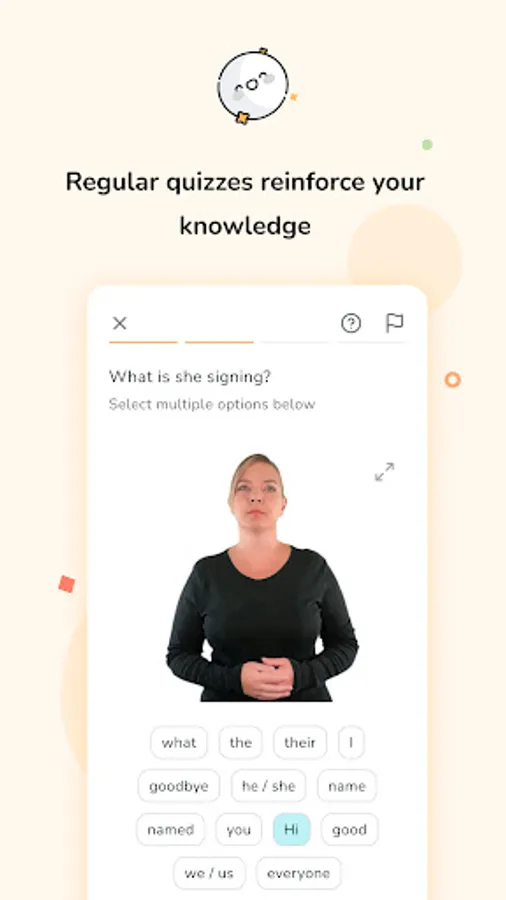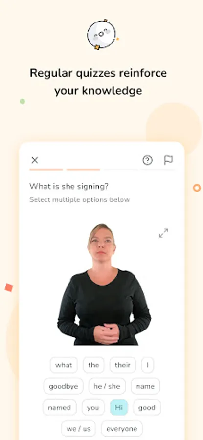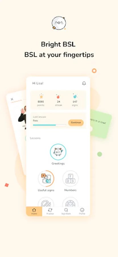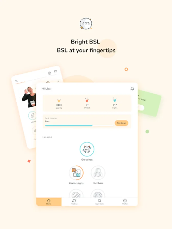 Bright BSL enables you to learn British Sign Language anywhere and at any time in a fun and effective way. The learning experience consists of 20 modules, each on a different topic and with specific learning outcomes. Within each module, you will have 4-7 gamified lessons, through which you will acquire new signs, practice mastery, learn about the grammar and continuously learn a new language. While our AI ensures that skills are not only learnt, but retained over time.