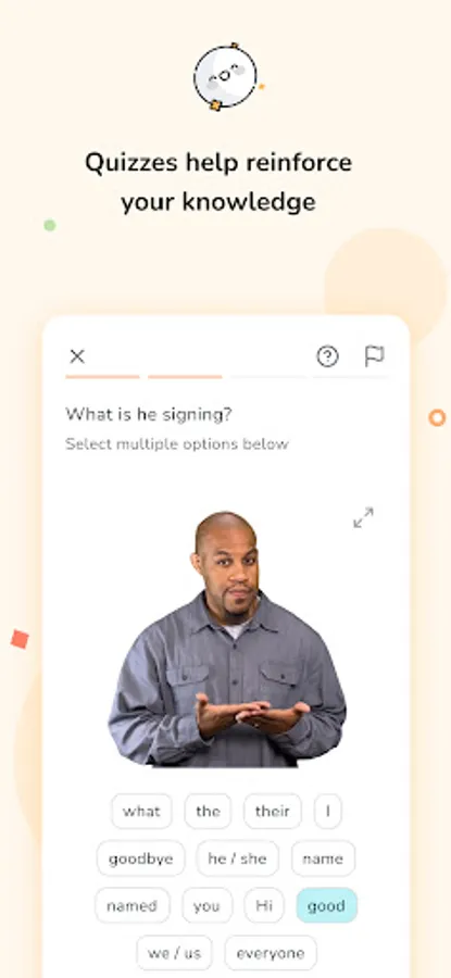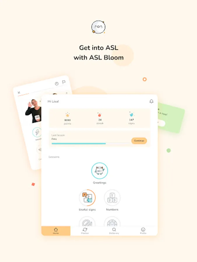 ASL Bloom enables you to learn American Sign Language anywhere and at any time in a fun and effective way. The learning experience consists of 20 modules, each on a different topic and with specific learning outcomes. Within each module, you will have 4-7 gamified lessons, through which you will acquire new signs, practice mastery, learn about the grammar and continuously learn a new language. While our AI ensures that skills are not only learnt, but retained over time.