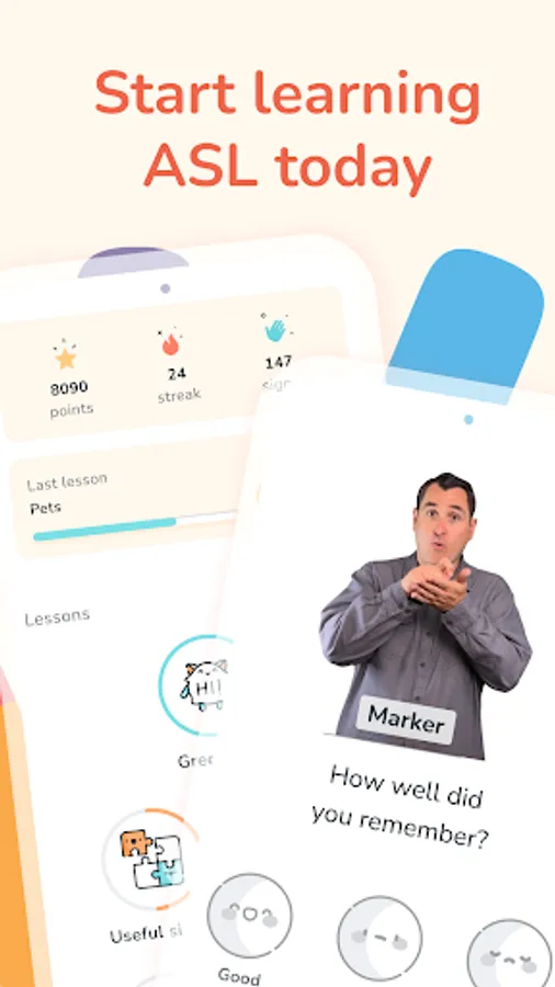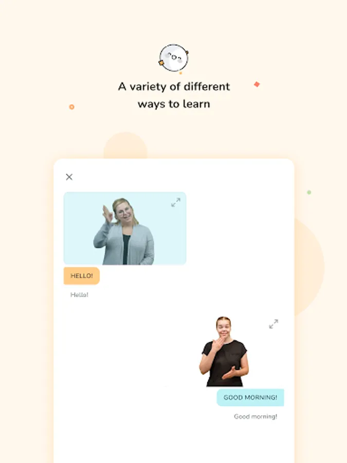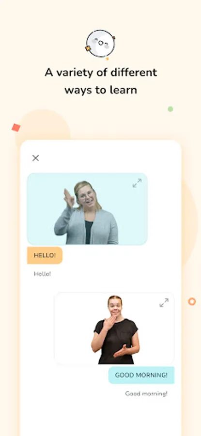 - 20 modules with 120 lessons and 1300+ signs and sentences