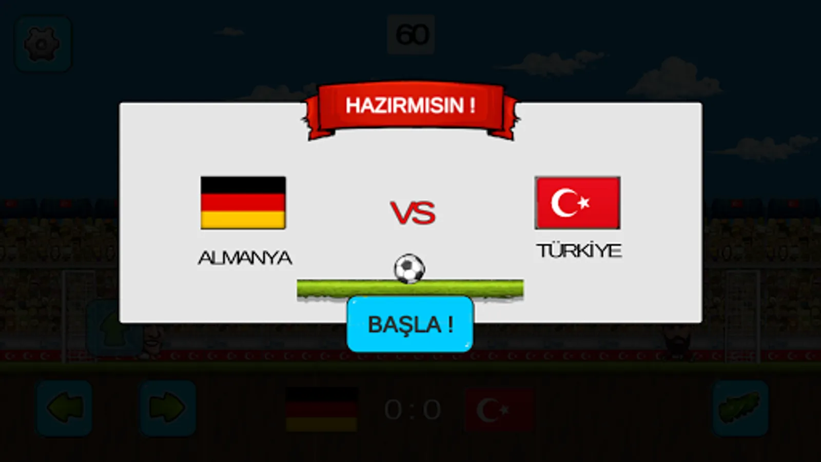 Gorgeous graphics that can be played along with this online football game main menu and settings in the section of the game off the music and sound effects mode and can be tailored to the current environment. Although located within the Games football matches have been arranged according to the countries; Japan, Turkey, Azerbaijan, Germany, has a total of 32 national teams, as well as countries such as the United States. Turkey as a national team player would be able to play this game.