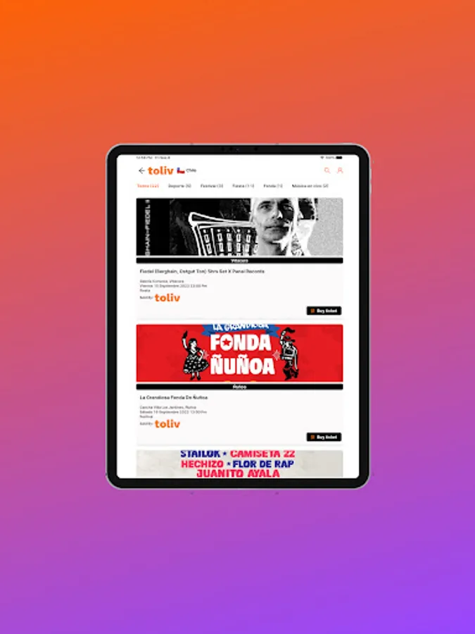 We are Toliv, the best application for finding events and buying tickets. We also do food delivery in regions. In Toliv you will find an excellent user experience and also a first level support